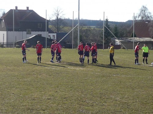 Die 2. Halbzeit stellte ein Ebenbild der 1. dar, mit vielen Freiräumen und Chancen für den SV. In der 50. Min eroberte der eingewechselte Herzig den Ball am Strafraum und zog ab, doch der Torwart konnte ein erneutes Tor für den SV verhindern.7 Min. später köpfte Herzig, der nach schönem Heber von Graf optimal in Szene gesetzt wurde, den Ball freistehend in die Arme des Keepers. Mit etwas mehr Sprungkraft wäre hier das 2:0 fällig gewesen. Nur 1 Min. später fiel doch das 2. Tor für den SV, als Weise, nach schönem Doppelpass zwischen Herzig und Böhme, den Ball bekam und überlegt einschob. Doch die Freude währte nicht lang, denn nur 1 Min später kam Hohenleuben zum 2:1 Anschlusstreffer, als die SV-Abwehr den Ball nicht aus der Gefahrenzone schlagen konnte. Den alten Abstand stellte Kirchgeorg in der 64. Min. wieder her, als er einen schönen Freistoß direkt zum 3:1 verwandelte. In der 67. Spielminute kam Lehmann nach wochenlanger Verletzungspause das erste Mal wieder zum Einsatz und sorgte in der 71. Min. für die nächste SV-Chance, doch sein Schuss aus der 2.Reihe konnte vom gegnerischen Torwart noch pariert werden. Nur 3 Min. später stand wieder der Torwart im Mittelpunkt, als er einen Schuss von Graf noch zur Ecke lenken konnte. 6 Min. vor Schluss legte sich Kirchgeorg den Ball aus ähnlicher Position wieder zum Freistoß bereit, doch diesmal ging sein Schuss leider nur knapp vorbei. 1 Min. später zwang Böhme den Hohenleubener Schlussmann durch einen Freistoß zu einer Glanztat. In der 88. Min. vergab Herzig die letzte der unzähligen Chancen für den SV, bevor sich in den letzten Spielsekunden nochmals SV-Torwart Kursawe bewegen musste um einen Schuss zu parieren. Gleich darauf ertönte der Schlusspfiff und der SV siegte hochverdient mit 3:1. Angesichts der vielen Freiräume, die den SV-Männern gelassen wurden, hätten aber weit mehr Tore fallen müssen. Dieses Manko gilt es in den Punktspielen abzustellen und die Chancen öfters im Tor unterzubringen. Dann steht einer positiven Rückrunde nichts mehr im Wege.